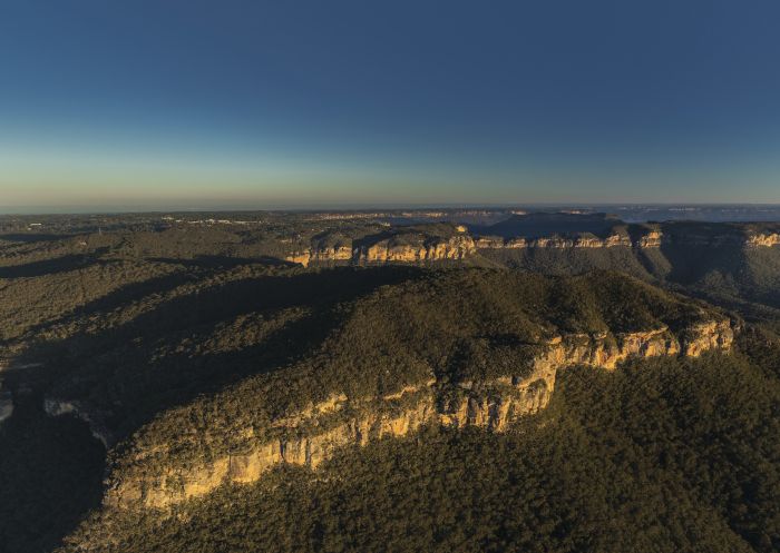 Sun setting over Narrow Neck, Katoomba in the World-Heritage listed Blue Mountains National Park