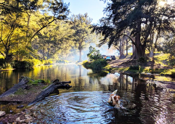 ブルー・マウンテンズの北西に位置する2,500ヘクタールの広大な敷地に位置するこのリトリートは、素朴なログキャビン、グランピングテント、キャンプ場を備え、慌ただしい日常から解き放たれた至福のひとときをお過ごしいただけます。愛犬は、この広大な敷地を自由に歩き回りながら、夢の田舎暮らしを満喫できるでしょう。敷地内には12キロメートルのマス川も流れています。